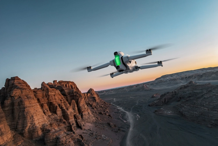 Dron je vybaven horizontální detekcí překážek, funkcí návratu domů, automatickým vysouváním podvozku a výměnnými čočkami. Díky váze 249 g splňuje legislativní limity ve většině zemí.
