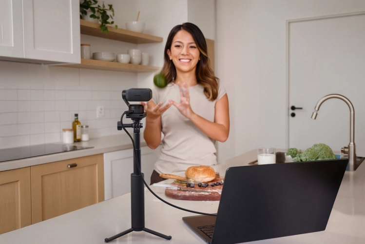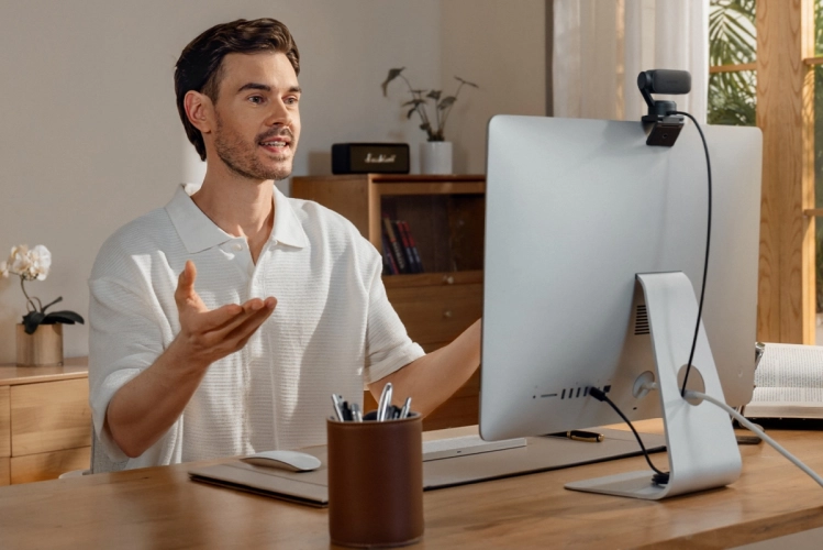 Natáčejte bez přerušení a nutnosti stříhat video. Zůstaňte v záběru a pokračujte v prezentaci. K ovládání webové kamery postačí jednoduchá gesta rukou.