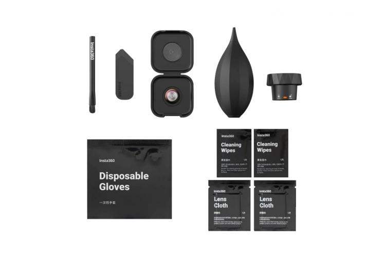 V balení najdete oficiální náhradní čočku pro X4 Air, nástroj pro demontáž/připevnění čočky, stlačené vzduchové „blowery“, čisticí utěrky, rukavice a kartáček — vše, co potřebujete k bezpečnému a čistému zásahu.