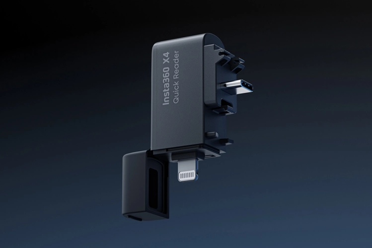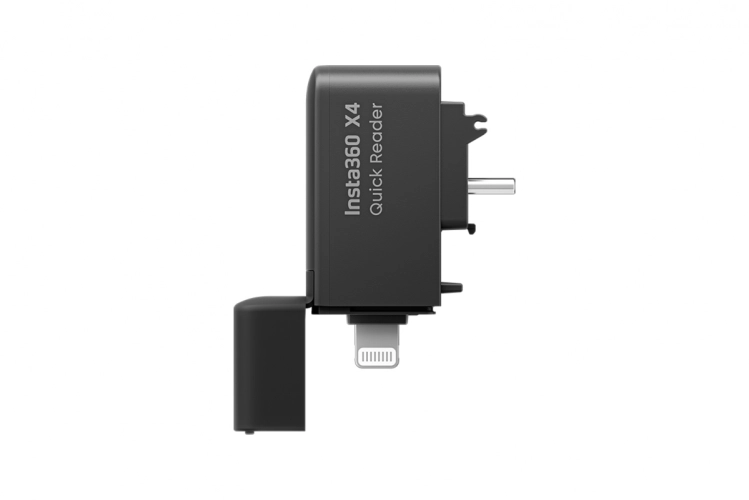 Rychlá čtečka karet pro kameru Insta360 X4. Čtečka slouží k rychlému stažení souborů z karty v kameře Insta360 X4 a následnému nahrání souborů do telefonu. Konektor Lightning/USB-C. Váha: 12,5g Rozměry: 46 x 14 x 31 mm