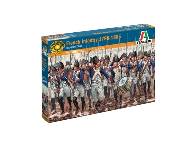 Italeri plastikový model set figurky napoleonské války, francouzská pěchota 1800-05 v měřítku 1:72 ke slepení. Stavební obtížnost 1.