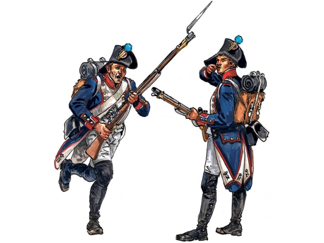 Pěchota francouzské armády se dělila na řadovou (infanterie de ligne) a lehkou (infanterie légère). Rozdíl mezi řadovou a lehkou pěchotou spočíval ve způsobu nasazení – řadová pěchota bojovala v sevřených formacích, lehká byla nadto určena pro boj mimo formaci.