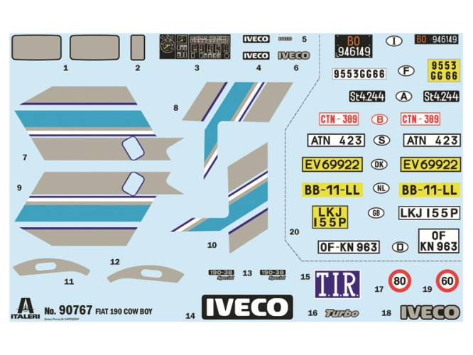 Italeri plastikový model tahače Iveco Cow-Boy v měřítku 1:24 ke slepení. Délka 23,8 cm, stavební obtížnost 5.