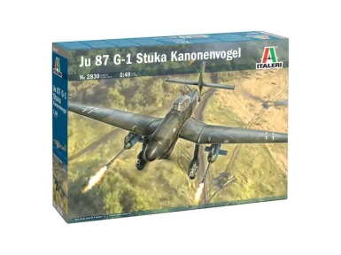 Plastikový model Italeri 2830 - letadlo Junkers Ju-87 G-1, v měřítku 1:48 ke slepení. Délka modelu 229 mm, obtížnost 3. Balení obsahuje SKVĚLÉ OBTISKY PRO 4 VERZE.