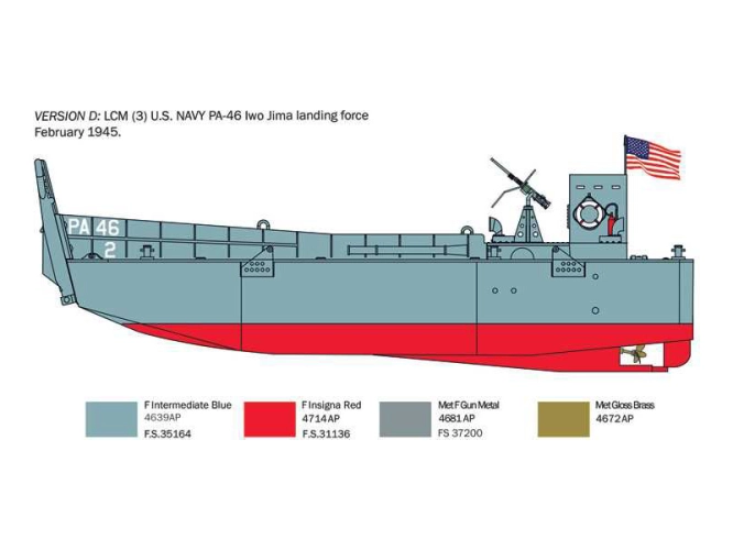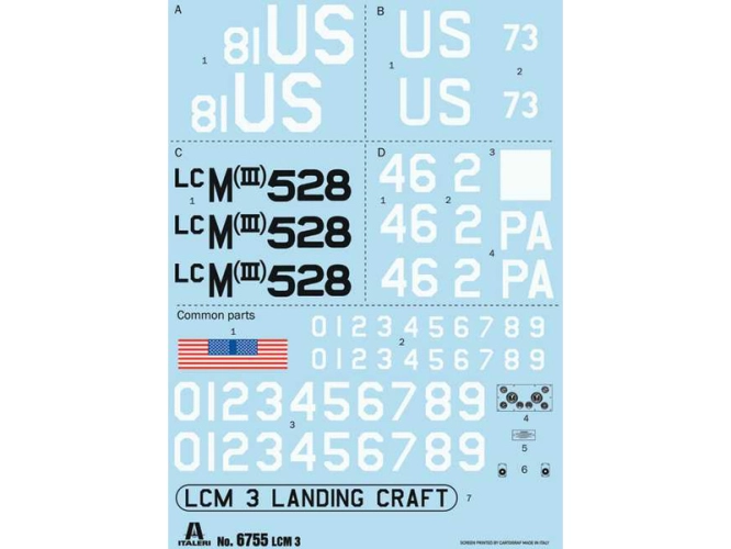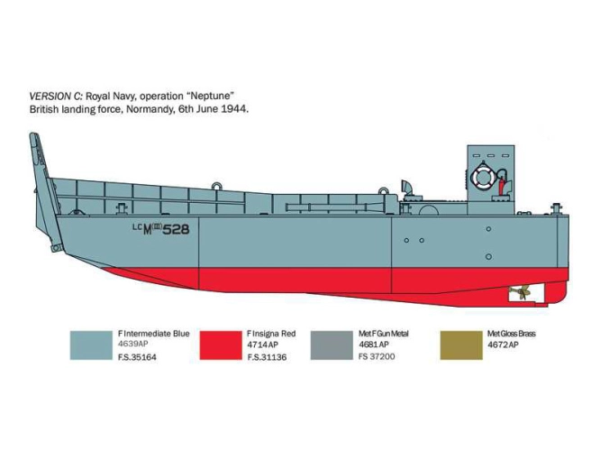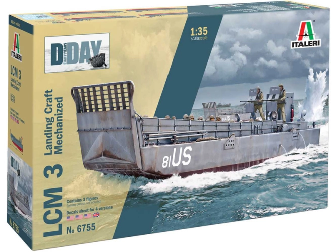 Italeri plastikový model vyloďovací lodi LCM3 v měřítku 1:35 ke slepení. Délka 435 mm, stavební obtížnost 4, barevný stavební návod. Stavebnice obsahuje obtisky pro tyto 4 verze: