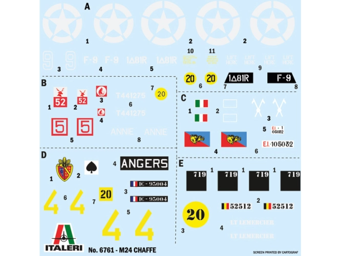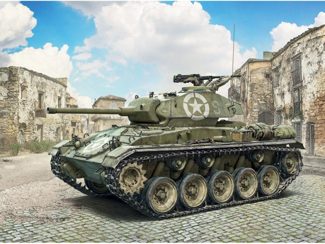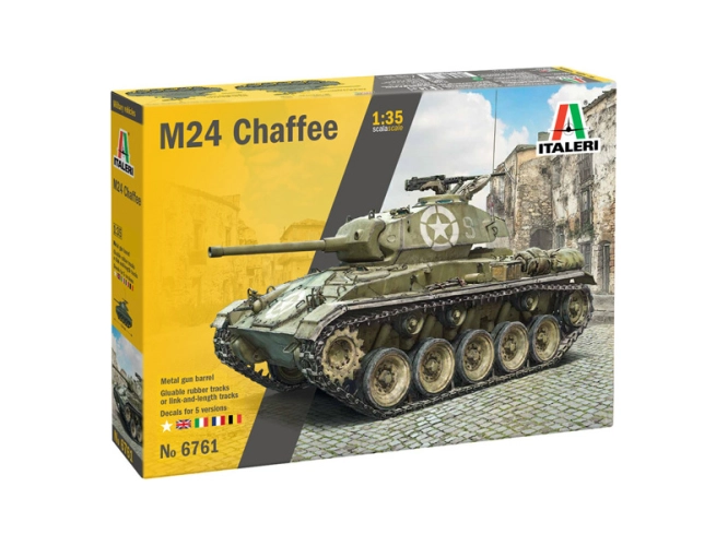 Italeri plastikový model tanku M24 Chaffee v měřítku 1:35 ke slepení. Délka 159 mm, stavební obtížnost 4.