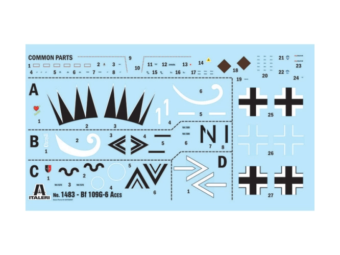 Italeri plastikový model letadla Messerschmitt Bf-109 G-2/G-6 Aces v měřítku 1:72 ke slepení. Délka 12,5 cm, stavební obtížnost 2.