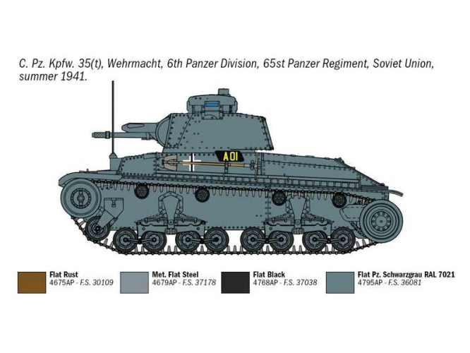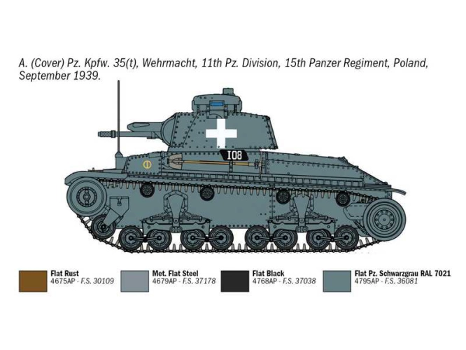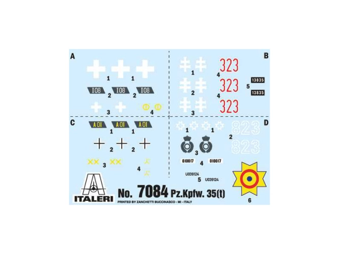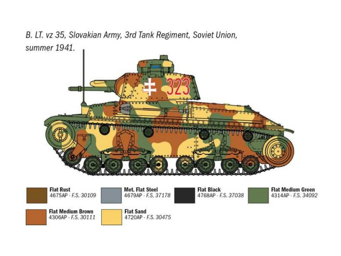 Plastikový model Italeri 7084 – československý tank vz. 35 (označení Pz. Kpfw. 35(t)) v měřítku 1:72 ke slepení. Délka modelu 68 mm, obtížnost 3. Balení obsahuje SKVĚLÉ OBTISKY PRO 4 VERZE.