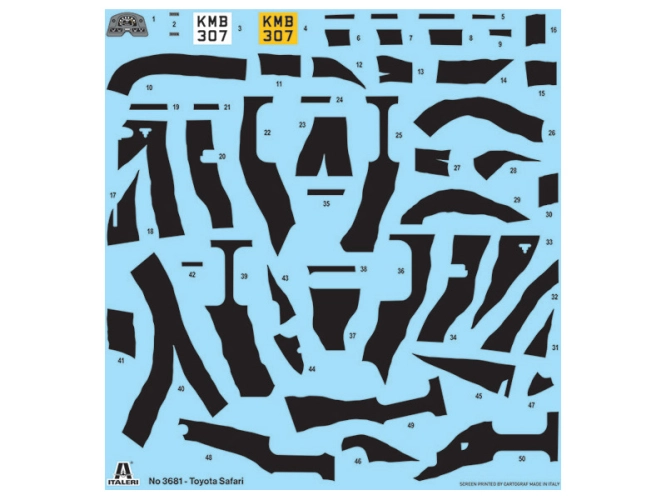 Italeri plastikový model auta Toyota Safari v měřítku 1:24 ke slepení. Délka 16,5 cm, stavební obtížnost 3.