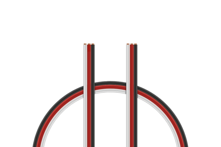 Plochý třížilový kabel tlustý v barvách Futaba (černá/červená/bílá) s PVC izolací, průřez vodičů 0,14 mm2. Vysoce ohebný, lanka ze 72 pramenů 0,05 mm, vnější rozměr 1,1x3,9 mm, max. 48 V, 3A. Vyrobeno v Německu. Cena za 1 meter