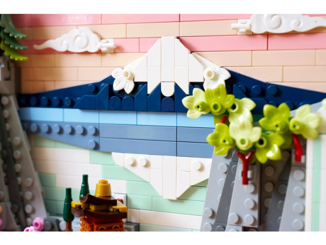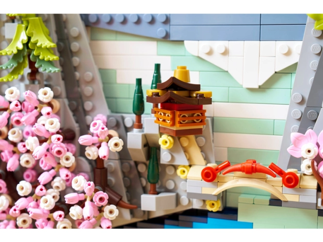 - POCTA JAPONSKU – Tato stavebnice LEGO® inspirovaná tradiční japonskou krajinou obsahuje horu Fudži, čajovnu, japonské jeřáby, javory „Sango-Kaku“, sakury a pajehličníky