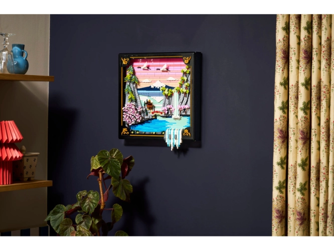 - UPRAVTE SI 3D VODOPÁD – Stavebnice LEGO® Art obsahuje vodopád, který přetéká přes okraj rámečku, takže při vystavení na zdi stéká přímo dolů, a když stojí, lze vodopád upravit tak, aby stékal na rovnou plochu