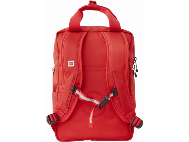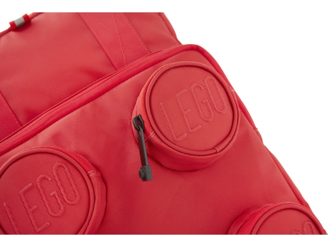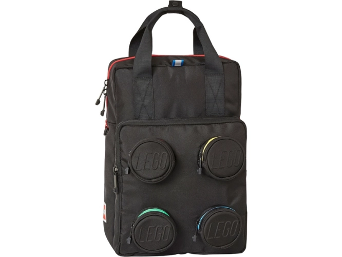 LEGO batoh Signature Brick ve stylovém designu ikonické Lego kostičky ve tvaru 2x2. Batoh má hlavní kapsu, přední kapsu a menší kapsičky v kruhových výstupcích s logem LEGO. Polstrované ramenní popruhy a hrudní popruh pro komfortní nošení.