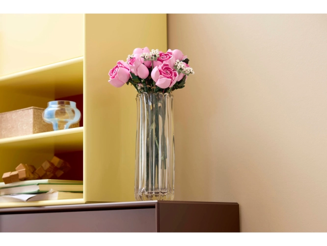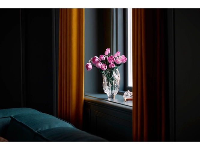 Vytvořte si elegantní květinovou dekoraci z kostek a obdivujte její detaily se stavebnicí LEGO® Botanicals (10374) Kytice růžových růží pro dospělé.