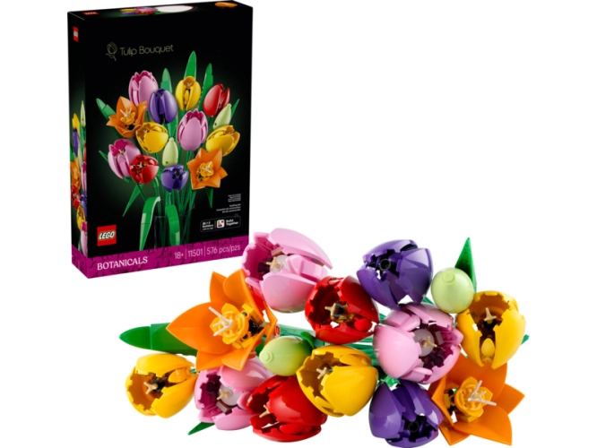 Obohaťte svůj domov o nádhernou květinovou dekoraci se stavebnicí LEGO® Botanicals Kytice tulipánů (11501) pro dospělé. Tato kytice LEGO zachycuje radost a optimismus jara a skládá se z 5 druhů tulipánů v různých barvách a fázích rozkvětu. Nechte se pohltit krásou květin a vytvořte zářivě zelená poupata, fialové uzavřené tulipány a červené, žluté a růžové rozkvetlé tulipány, které doplníte zelenými listy, aby model působil ještě autentičtěji.