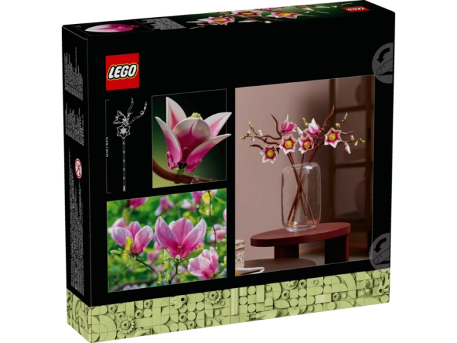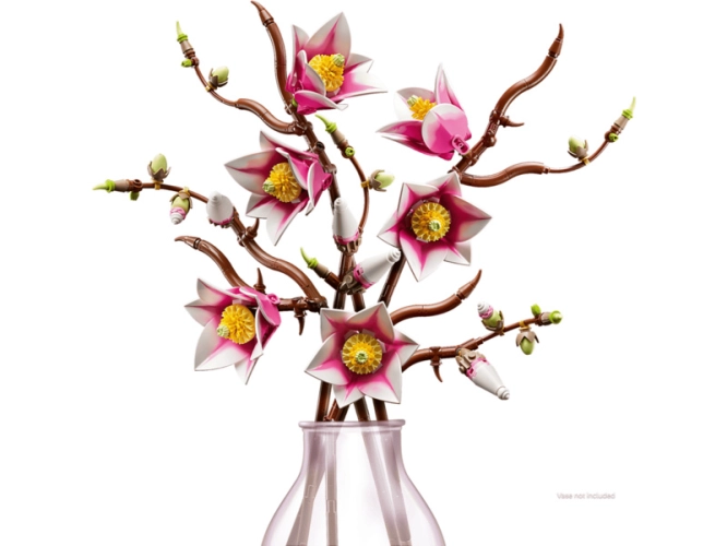 - MAGNÓLIE VE STYLU LEGO® – Ve stavebnici najdete pět větviček magnólie, z nichž dvě znázorňují celý proces kvetení od malého poupátka až po otevřené okvětní lístky