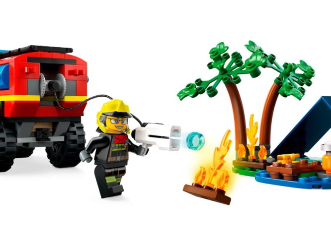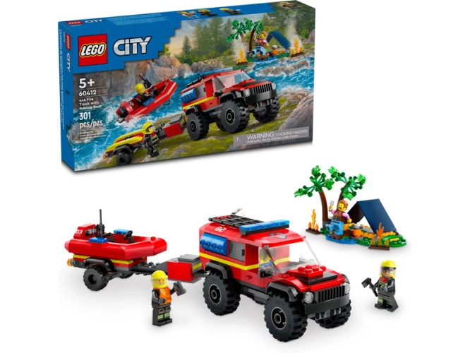 Stavebnice LEGO City Fire přináší hračky plné úžasných funkcí pro neomezené hraní na zemi, ve vzduchu i na vodě. Děti mohou tuto stavebnici s hasičským vozem 4x4 a záchranným člunem přidat k ostatním stavebnicím z řady Lego City (prodávané samostatně) a užívat si ještě úžasnější dobrodružství!