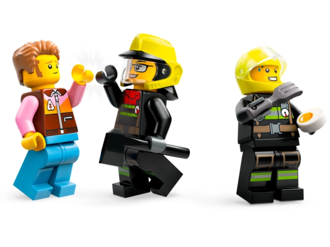 - Co obsahuje tako stavebnice LEGO®? – Vše, co děti potřebují k sestavení hasičského vozu 4x4, přívěsu, záchranného člunu, stanu a kempovacího vozu. Součástí jsou také 2 minifigurky hasičů.