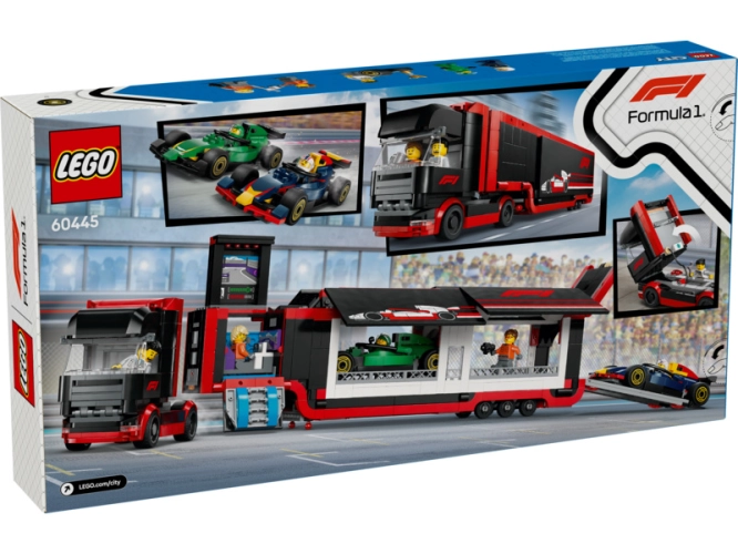 - Stavebnice LEGO® F1® s přepravním kamionem – Malí fanoušci Formule 1 si zamilují tuto prémiovou stavebnici LEGO City Kamion F1® s vozy F1® RB20 a AMR24 pro děti od 8 let