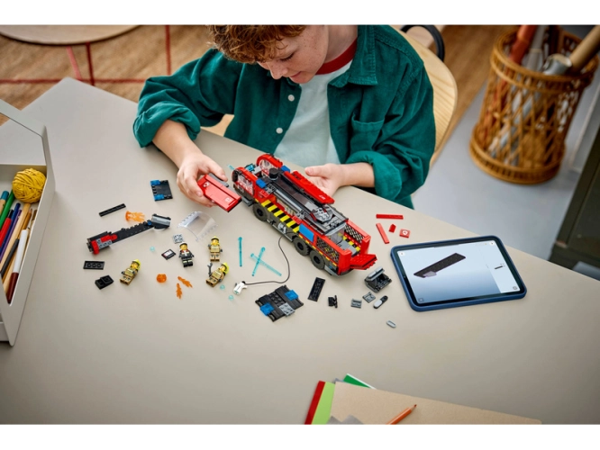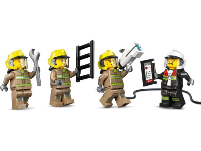 - DOPLŇKY MINIFIGUREK – Tato hasičská hračka obsahuje řadu doplňků LEGO®, včetně hasičských přileb, hasáku a digitálního tabletu