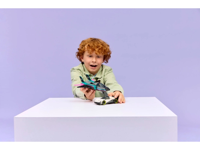 Zkombinujte ji s dalšími stavebnicemi z řady LEGO® City (prodávají se samostatně) a zažijte akční dobrodružství po celém městě. Tato stavebnice vozidel LEGO obsahuje sportovní auto a tryskové letadlo. Děti se můžou těšit na ještě větší porci zábavy díky aplikaci LEGO Builder, ve které můžou modely přibližovat, otáčet ve 3D a sledovat svůj pokrok při stavění. Stavebnice obsahuje 259 dílků.