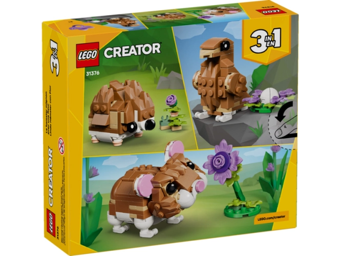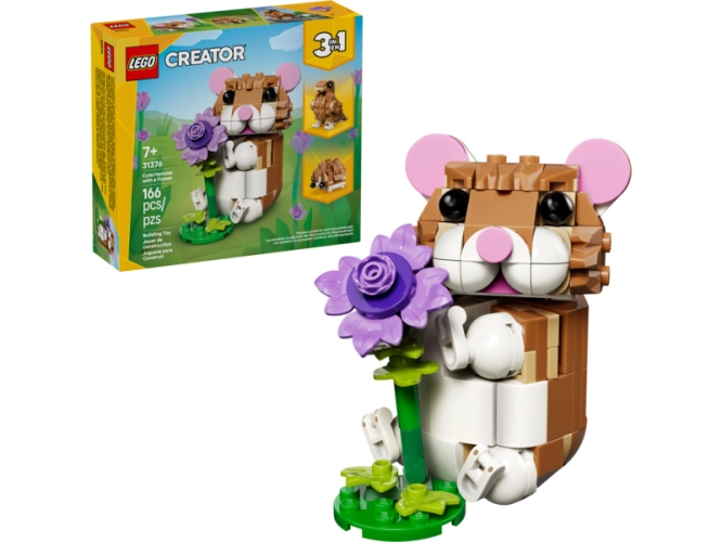 - HRAČKA 3 V 1 PRO DĚTI – Se stavebnicí LEGO® Creator 3 v 1 Roztomilý křeček s květinou (31376) si holky a kluci od 7 let postaví a přestaví 3 roztomilé hračky ze stejné sady kostek