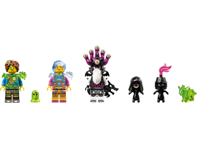 Minifigurky Matea, Izzie a císaře z nočních můr rozproudí hru, a každá z nich má svůj vlastní meč v barvě odpovídající jejich postavě. Dvojice figurek šklebounů, figurka Z-Fleka a diamantové vejce, ze kterého se líhne zelené pokladové stvoření přináší extra porci zábavy.