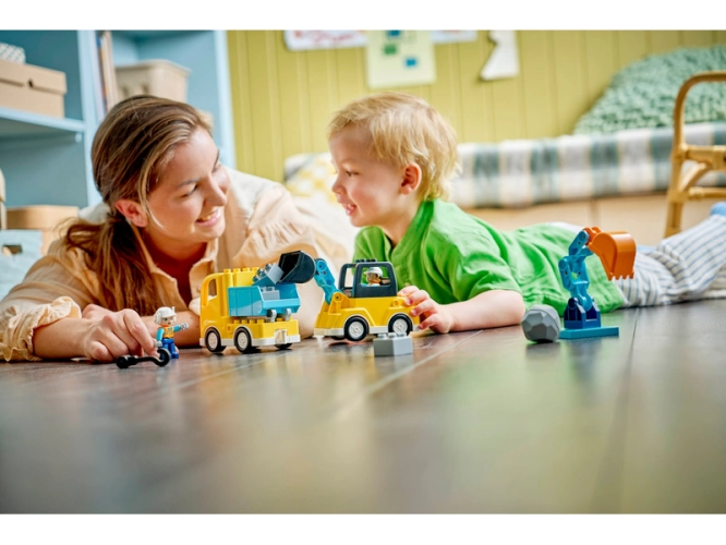 - 1 STAVEBNICE, 6 MODELŮ VOZIDEL – Z kostek této stavebnice LEGO® DUPLO® pro batolata lze sestavit dva odtahové vozy s různými háky, nakladač, zvedák, sklápěč nebo bagr s ohebným ramenem