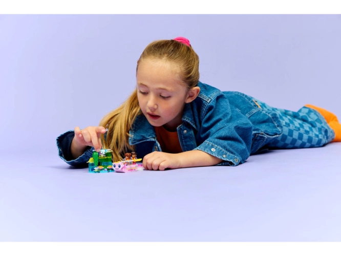 - 2 POSTAVY LEGO® FRIENDS – Tato stavebnice obsahuje minipanenku Lea, mikrofigurku Alby, 2 figurky axolotlů a doplňky, které děti inspirují ke kreativnímu hraní