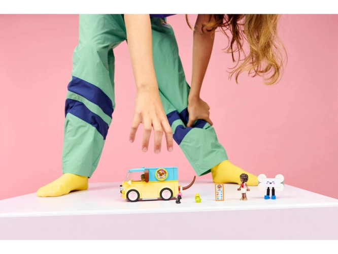 - DODÁVKA S MOTIVEM MOPSE – Užijte si radostné doručování zásilek s roztomilou stavebnicí LEGO® Friends Dodávka s doplňky pro mazlíčky (42678) s designem mopse, které nechybí štěněcí obličej a ocas, který vrtí, když se dodávka pohybuje