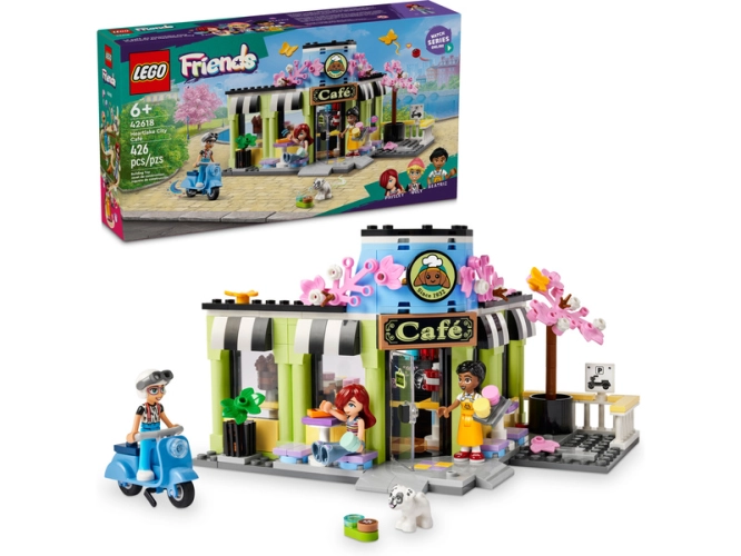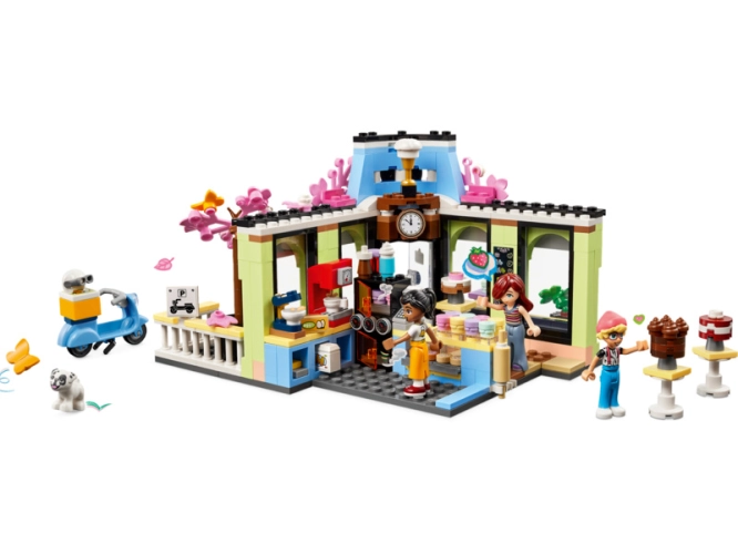 - Příběhy z kavárny pro děti – Ve stavebnici Kavárna v městečku Heartlake pro kluky i holky od 6 let najdete 3 minipanenky a figurku psa, doplňky v podobě jídla a skútr pro nápadité hraní