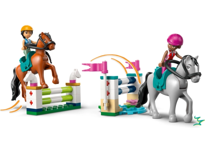Součástí stavebnice je spousta doplňků, takže se děti každý den můžou vydat na nové herní dobrodružství. Stavebnice obsahuje koňskou deku, překážky, kolečko, boxy na seno, mrkev, tabuli, trofeje, knihy, postele a další příslušenství.