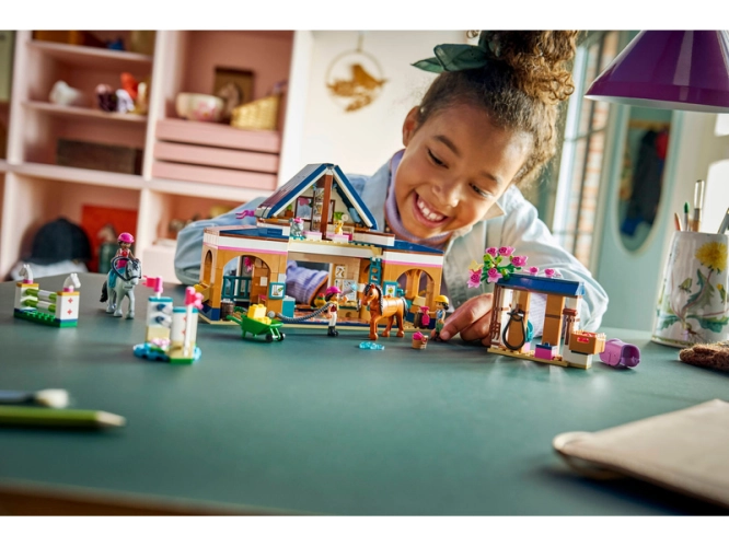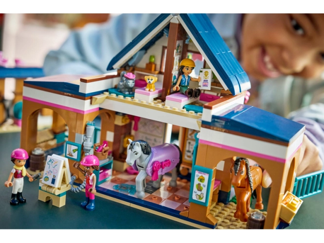 - STAVEBNICE SE STÁJÍ – Děti od 7 let si užijí hodiny nápadité zábavy s propracovanou stavebnicí LEGO® Friends Koňská stáj a jezdecká akademie (42688), která obsahuje 3 minipanenky, 2 koně a štěně