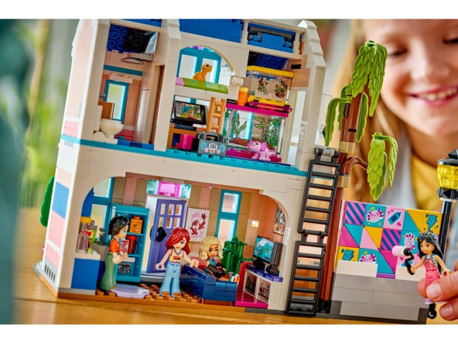 Vítejte v Liannině rodinném domě (42687), kde si děti od 7 let můžou vymýšlet vlastní příběhy. Holky a kluci prozkoumají krásný domeček LEGO® s kuchyní, obývacím pokojem, ložnicí, balkonem a zahradou. Vyzkoušejte různé koníčky – Liann a její kamarádi rádi jezdí na skateboardu, věnují se umění a pečují o gekona a axolotla. Součástí propracované hračky jsou 4 minipanenky a spousta doplňků.