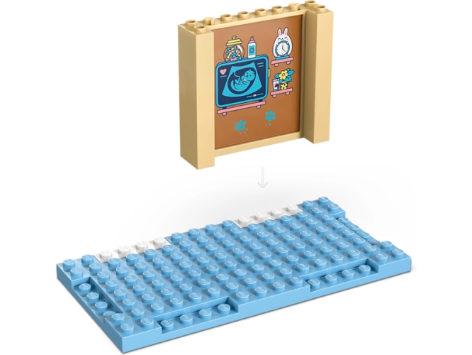 - ROZMĚRY – Stavebnice se skládá ze 141 dílků a model veterinární kliniky měří přes 9 cm na výšku, 20 cm na šířku a 7 cm do hloubky