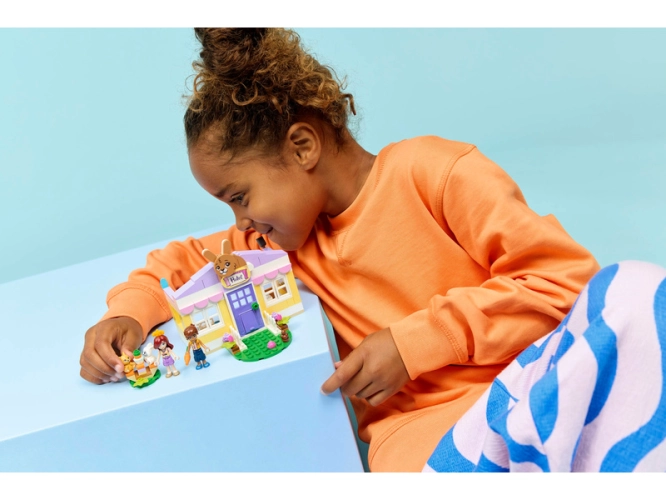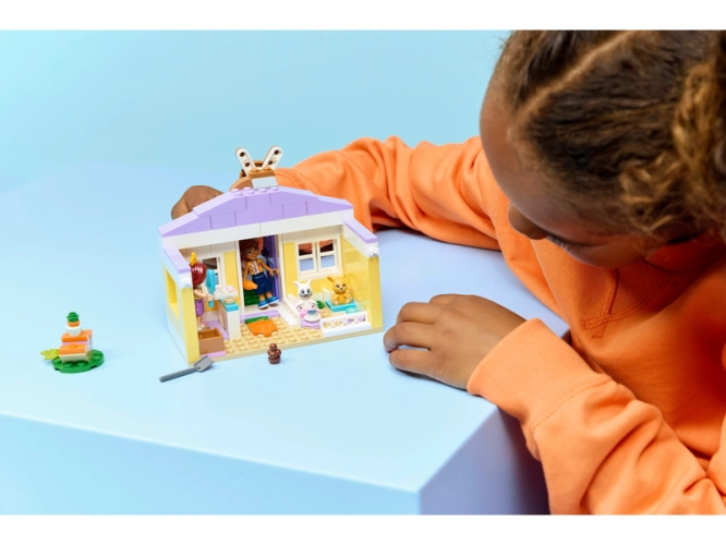 Naskočte do vyprávění příběhů s LEGO® Friends Hotel pro králíčky v městečku Heartlake (42679) pro holky a kluky od 5 let. Tato stavebnice obsahuje 2 minipanenky a 2 figurky králíčků, s nimiž děti můžou vymýšlet příběhy plné péče o zvířata. Roztomilá stavebnice je plná zábavných detailů, jako jsou speciální dvířka pro mazlíčky a roztomilá králičí cedule. Uvnitř najdete koberec ve tvaru mrkve, spací zónu s králičími postýlkami a seznam pro přihlášení králíčků do hotelu a jejich odhlášení. Venku je posezení pro králíčky, kde si můžou společně pochutnávat na mrkvovém cupcaku. Další doplňky inspirují děti k péči o zvířátka: kartáč, klubíčko vlny, krmení a voda pro králíčky, a lopatka na sbírání králičích bobků.