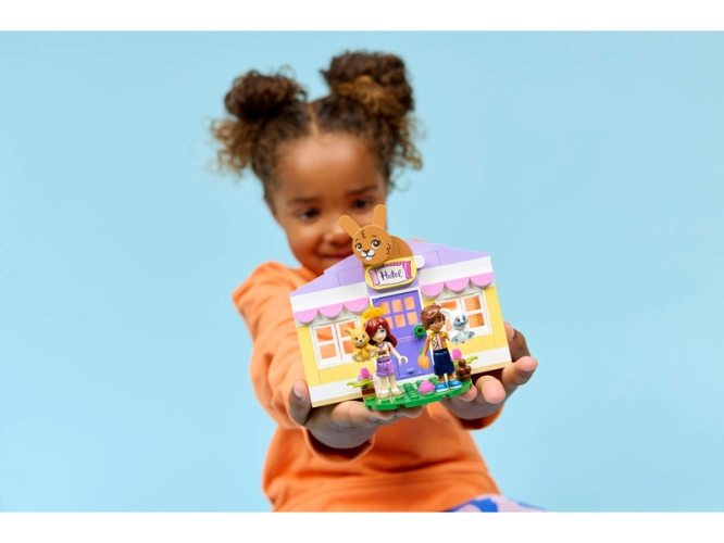 - 2 POSTAVY LEGO® FRIENDS – Hračka LEGO® Friends Hotel pro králíčky v městečku Heartlake (42679)obsahuje 2 minipanenky, Paisley a Lea, a 2 zvířecí figurky, které inspirují k nápaditému hraní