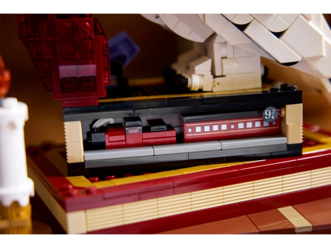 Otočte třemi kolečky a otočte hlavou Hedviky, přesuňte královnu na kouzelnických šachách a odejměte boční část Harryho kufru, která ukrývá scénu s útokem horského trolla v koupelně. Další mikromodely zahrnují Bradavický expres a pět zkoušek, které musí Harry podstoupit, aby se dostal ke Kameni mudrců. Stavebnice obsahuje 1 571 dílků.