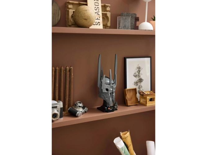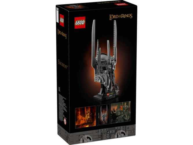 - CO NAJDETE V KRABICI – Vše, co potřebujete k sestavení repliky Sauronovy helmy, včetně podstavce na vystavení, jmenovky a minifigurky Saurona s Prstenem moci