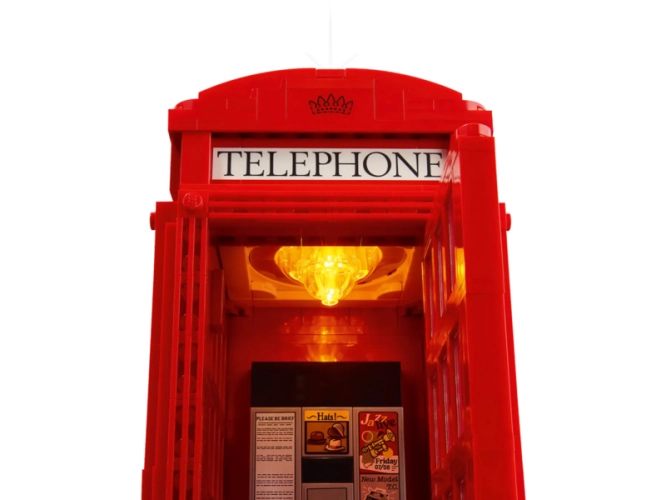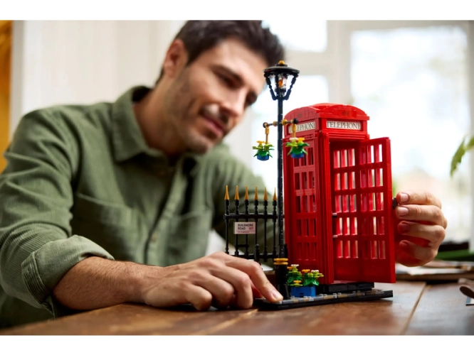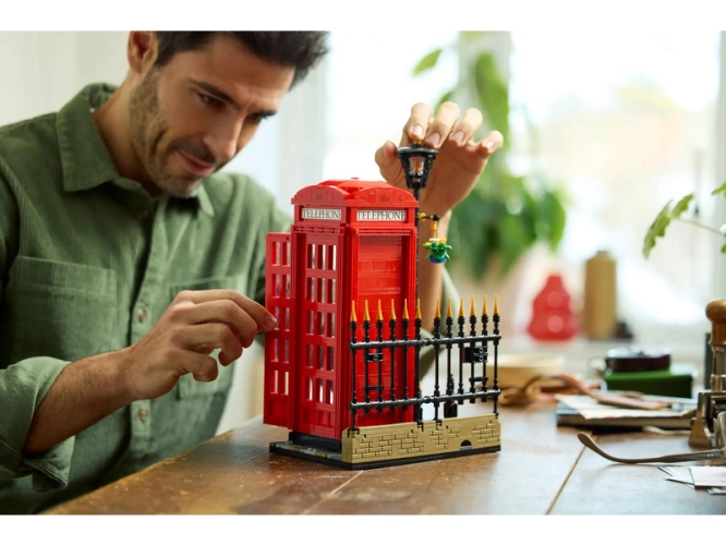 - Model Červené londýnské telefonní budky pro dospělé – S touto stavebnicí z řady LEGO® Ideas si postavíte ikonickou londýnskou telefonní budku K2 z kostek, která poslouží jako zábavný dárek pro milovníky cestování