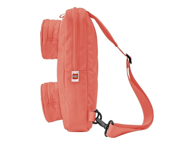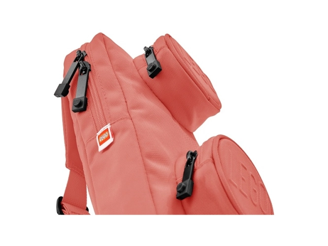 LEGO batůžek Signature Brick ve stylovém designu ikonické Lego kostičky ve tvaru 1x2. Batoh má hlavní kapsu a menší kapsičky v kruhových výstupcích s logem LEGO. Ramenní popruh přes jedno rameno.