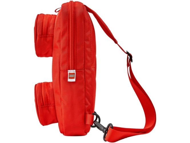 LEGO batůžek Signature Brick ve stylovém designu ikonické Lego kostičky ve tvaru 1x2. Batoh má hlavní kapsu a menší kapsičky v kruhových výstupcích s logem LEGO. Ramenní popruh přes jedno rameno.