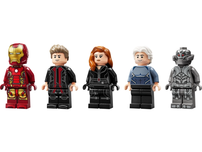 - Minifigurky superhrdinů – Stavebnice obsahuje 5 minifigurek LEGO®: Black Widow s motorkou, Iron Mana, Quicksilvera, Ultimate Ultrona a Hawkeye s lukem a šípy