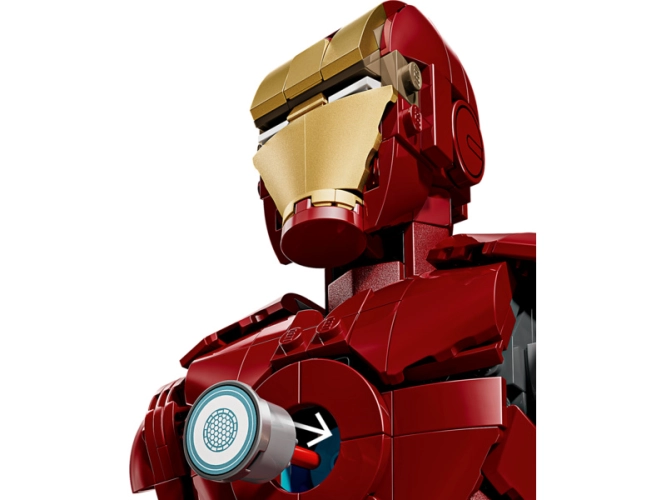 - PROPRACOVANÝ MODEL – Detailní model Iron Manova obleku se skládá z 1 297 dílků, je doplněný o obloukový reaktor a potěší dospělé stavitele