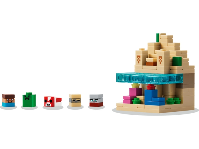 Tato stavebnice LEGO Minecraft obsahuje 5 odnímatelných biomů: hory s krápníkovou jeskyní, ametystovou geodou a vodopádem, květinový les s jeskyní, lávou a zlatem, houbové pole s korálovým útesem, vrakem lodi, 2 červenými houbovými stromy a hnědou houbou, poušť s chrámem, korálovým útesem, oceánem, kaktusy a truhlou s pokladem a savanu se základnou plenitelů, bujnou jeskyní, akáciovými stromy, dýní, lávou a pláží. Součástí je také oboustranné pozadí (den/noc).