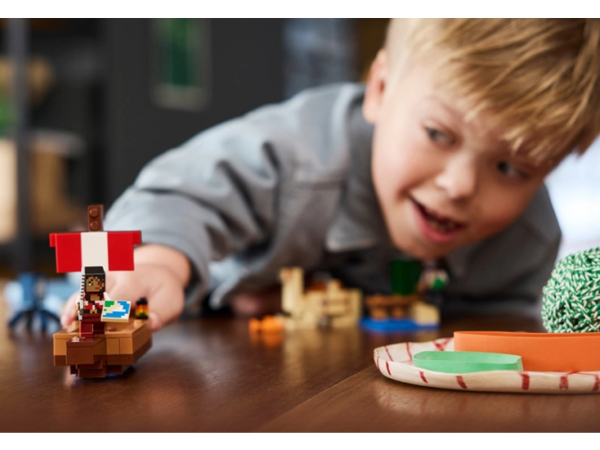 - Pirátská hračka – Darujte fanouškům hry Minecraft® všestrannou stavebnici LEGO® Minecraft Plavba na pirátské lodi pro děti od 8 let