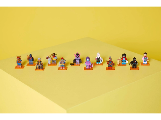 V každé krabičce s překvapením najdete 1 sběratelskou minifigurku ze světa Spider-Mana. Celkem jich můžete nasbírat 12: Miles Morales / Spider-Man, Miguel O'Hara / Spider-Man 2099, Gwen Stacyová / Spider Gwen, Hobie Brown / Spider-Punk, Pavitr Prabhakar / Spider-Man India, Miles G. Morales / Prowler, Peter B. Parker / Spider-Man a May „Mayday“ Parkerová, Margo Kessová / Spider-Byte, Peter Parker / Werewolf Spider-Man, Patrick O'Hara / Web-Slinger, Petra Parkerová / Cyborg Spider-Woman a Charlotte Webberová / Sun-Spider.