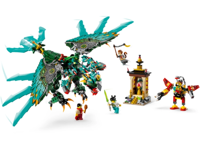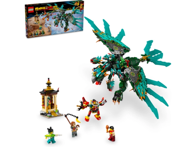 - Zábavná stavebnice – Tato sběratelská stavebnice LEGO® Monkie Kid™ obsahuje pohyblivou stavebnici létající ptačí příšery, 5 minifigurek, malý chrám, miniroboty a 2 barevné kameny v červené a modré barvě