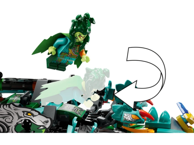 - Rozměry – Stavebnice se skládá ze 757 dílků a součástí je pohyblivé mytické stvoření, které měří přes 15 cm na výšku a s rozevřenými křídly měří přes 46 cm na šířku