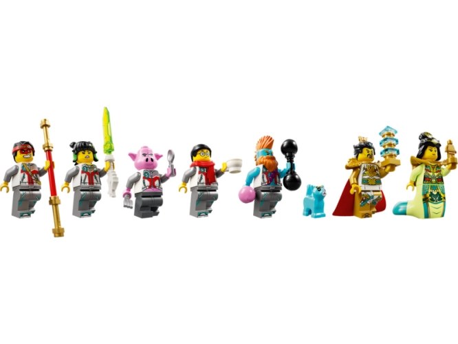 - Hraní na hrdiny – Děti v krabici najdou 7 minifigurek postav z legend: Mei, Monkie Kida, Pigsyho, Sandyho, Nüwu, pana Tanga, Li Jinga, a navíc figurku LEGO® kocoura Malého Mo